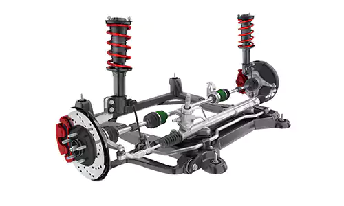 این سیستم مختص قسمت جلوبندی و تعلیق است که وظیفه اصلی آن، کنترلکردن خودرو در پیچوخم و دستاندازها میباشد و ملزم به کاهش و ازبینبردن لرزشها در حین رانندگی است. قطعات یدکی این سیستم شامل اهرم فرمان، سیبک، کمکفنرها، چرخدنده و سایر موارد هستند.